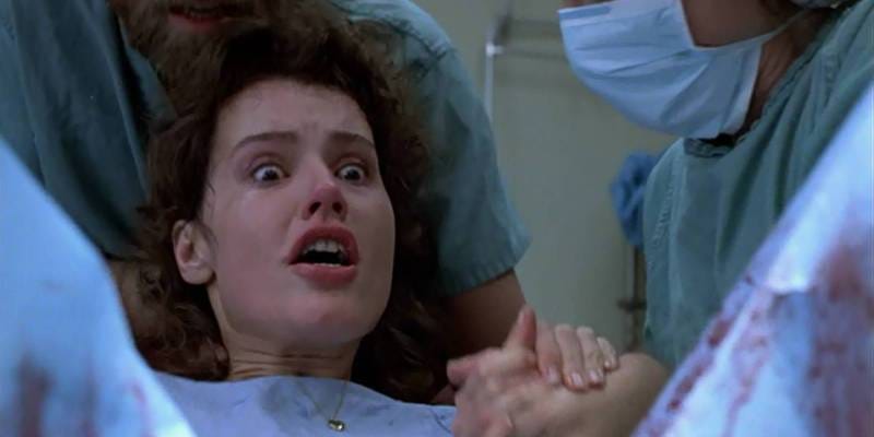 At the end of the film, we return to the relationship parallels to explore our arriving climax. Veronica is terrified of the repercussions of her newest toxic relationship. The pregnancy is an opportunity to lean into the effects of trauma and abuse. Carrying the sickness that has invaded Seth with her, being forced to live with it, incubating that damage, and then releasing it into the world. Meanwhile, Seth sees this as his opportunity. What Veronica considers a nightmare to be purged, Seth sees as a union that will finally defeat his greatest fear…being left alone. Not far removed from the have a baby to save a marriage trope, which is universally a bad idea, Brundle is looking for ways to force a bond with Veronica, and if he can’t find one, he’ll make one. The narcissist is, after all, a creature of power and control. It is here that Seth finally relinquishes any humanity he clung to.